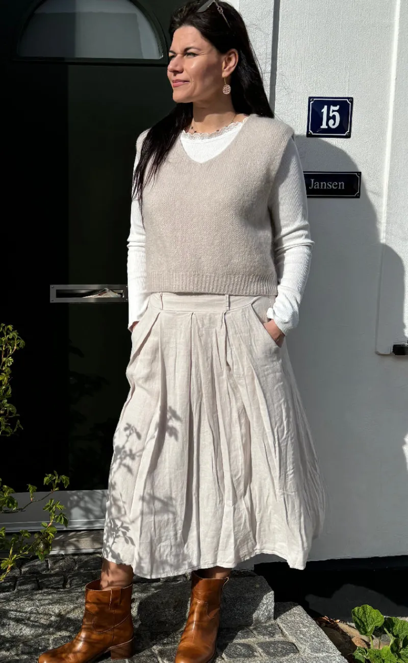 Sød og enkel nederdel fra Marta Du Chateau i beige, fremstillet i en dejlig hør kvalitet.