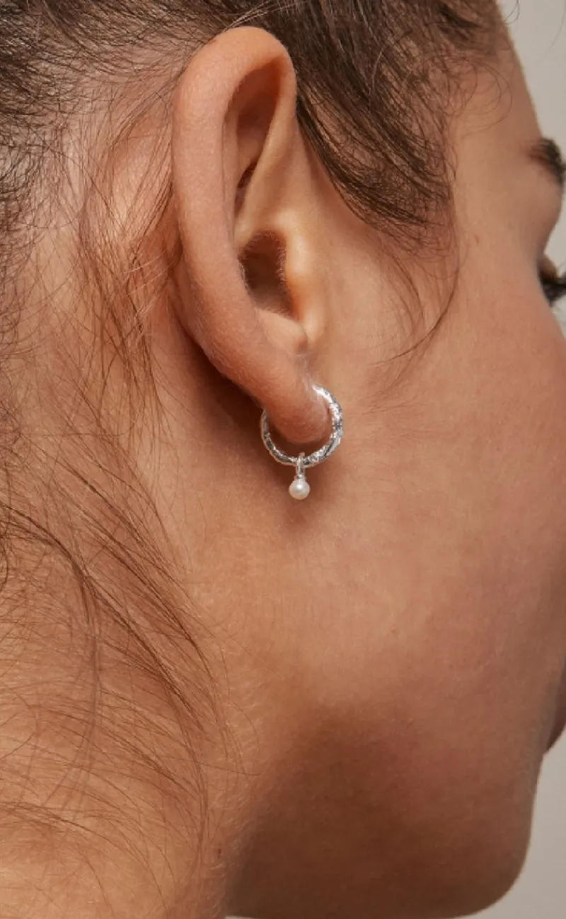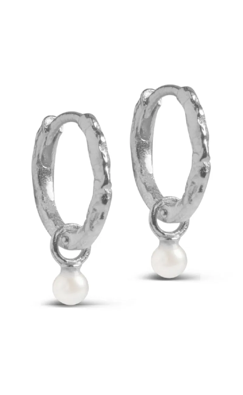 Flotte hoops fra Enamel Copenhagen I sølv med en lille, lys emalje kugle.