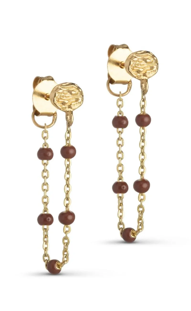 Smukke øreringe fra Enamel med små sten i brun.