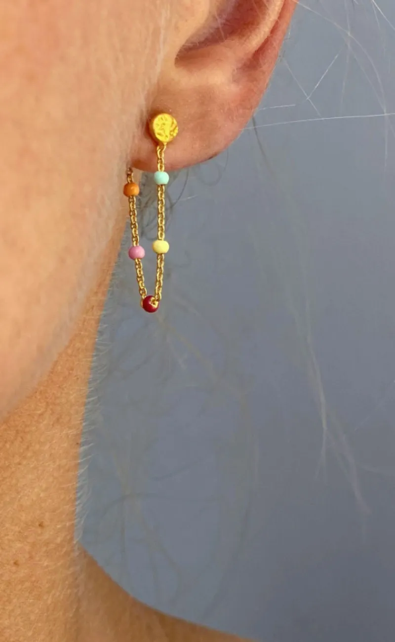 Farverige ENAMEL Copenhagen Lola øreringe i guld med en kæde og emaljer i flotte farver.