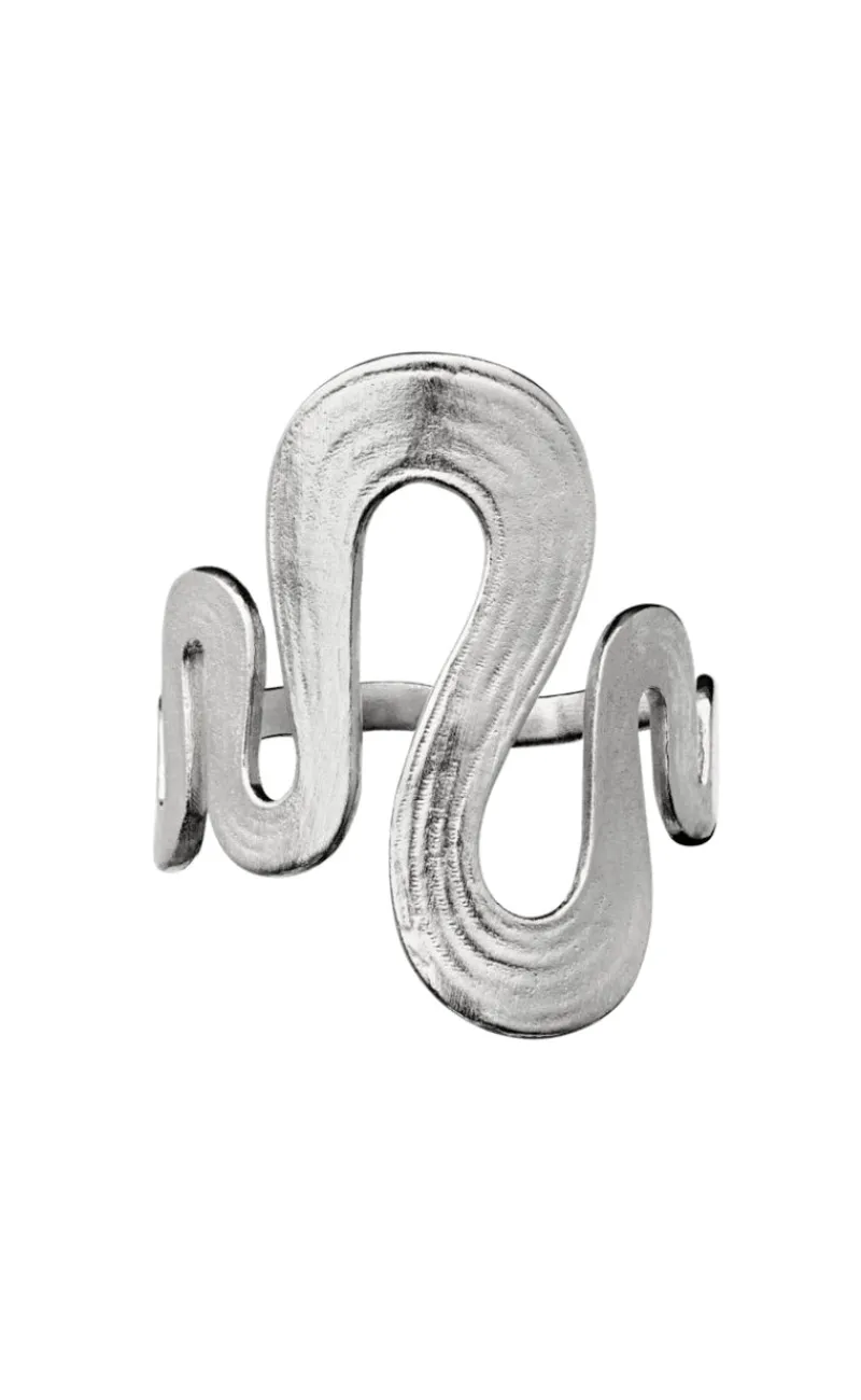 Pragtfuld ring fra Maanesten i sølv, med et blank, slange inspireret design.