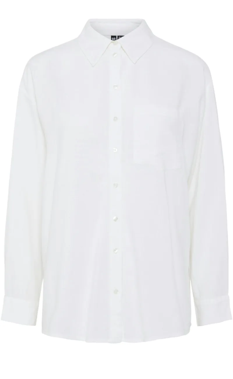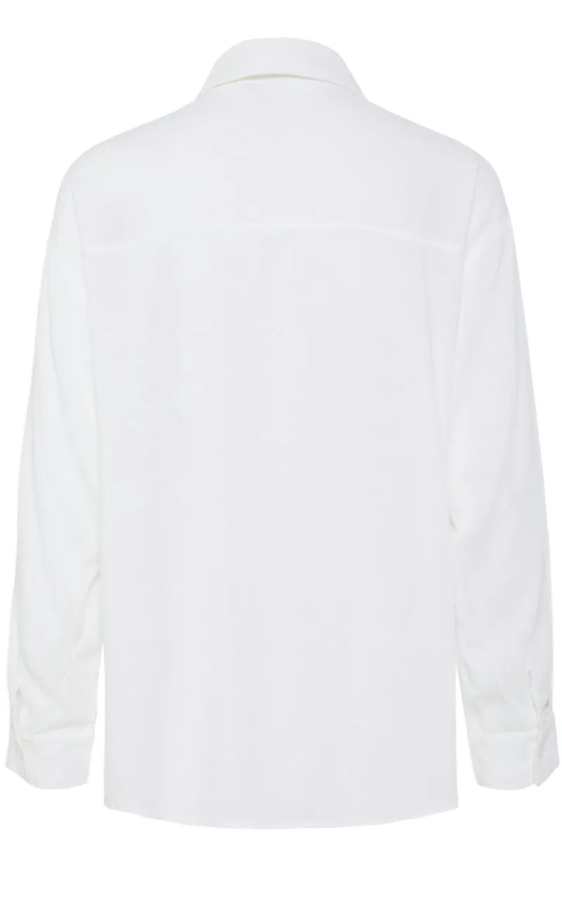 Skjorten har lange ærmer, er gennemknappet samt har en enkelt brystlomme.