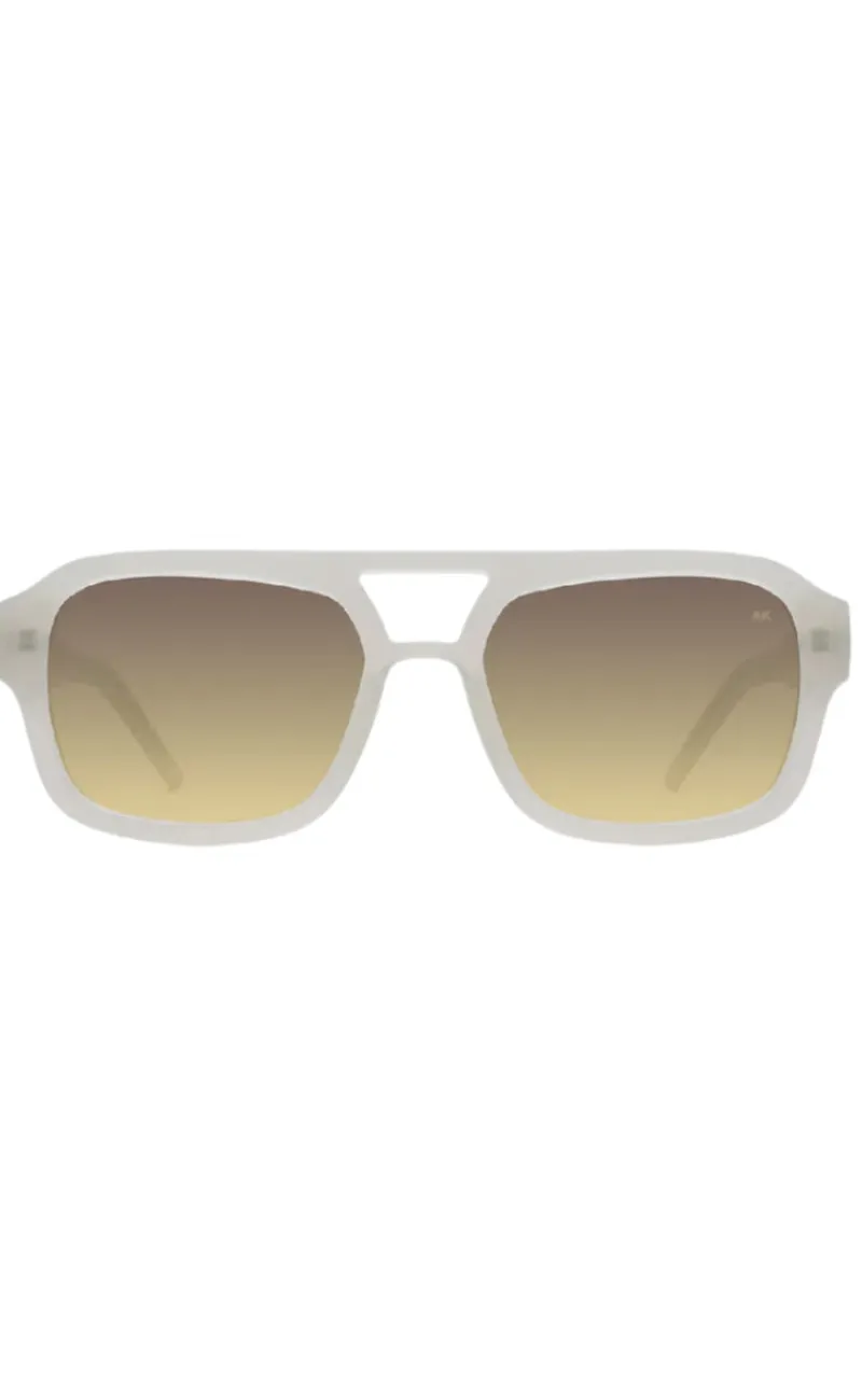 Flotte og stilrene solbriller fra A. Kjærbede i en creme hvid farve, med et gul farvet glas.