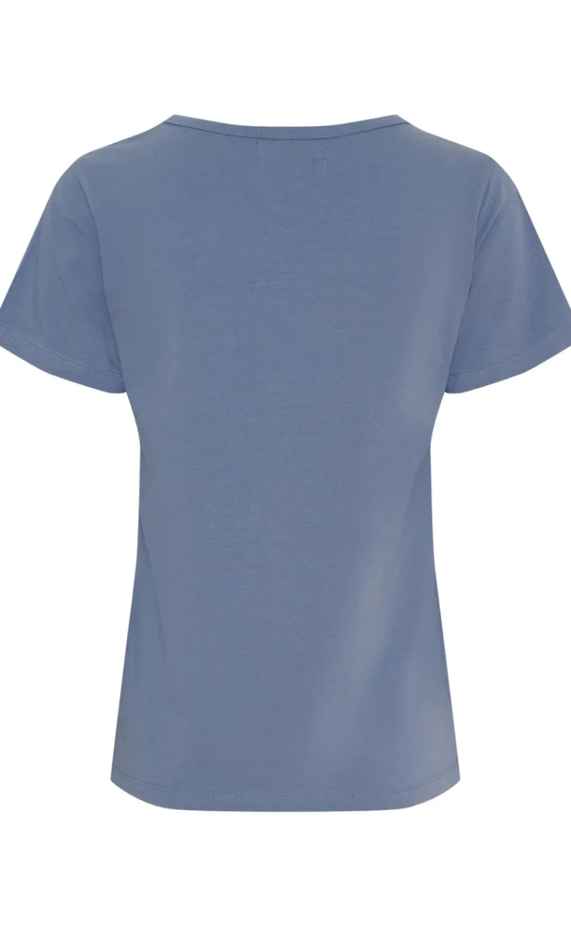 Sød t-shirt fra Marta Du Chateau i denim blå, med guld skrift på brystet.