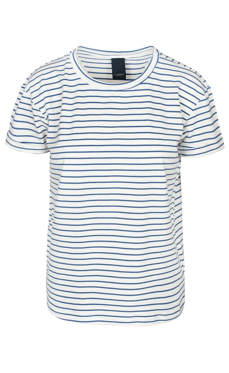 Basic, kortærmet t-shirt fra Luxzuz i blå og hvide striber.