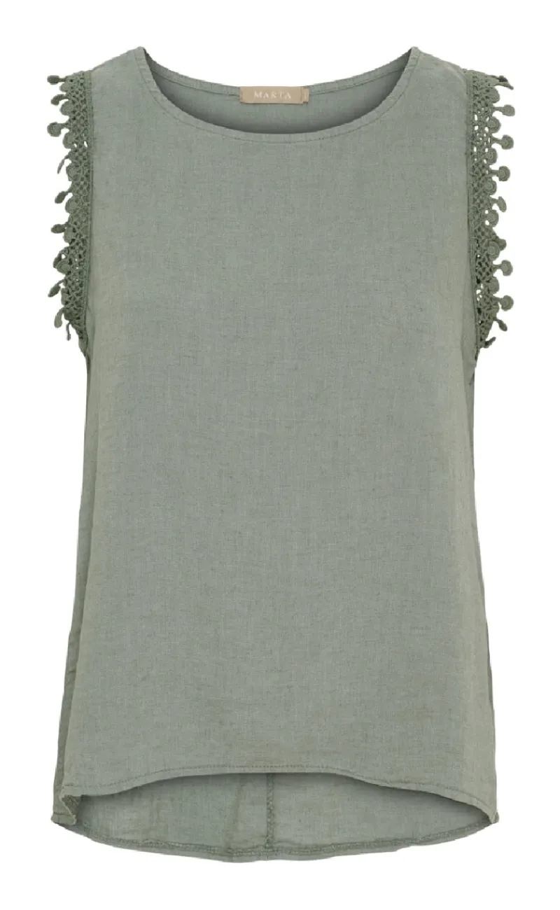 Sød og enkel top fra Marta Du Chateau i grøn, fremstillet i en dejlig hør kvalitet.
