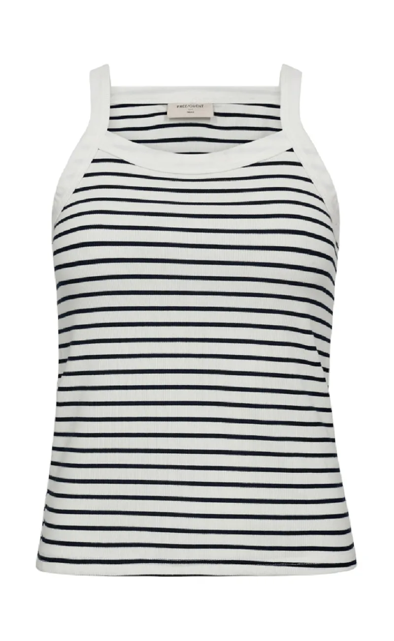 Stribet rib top fra Freequent i sort og hvid.