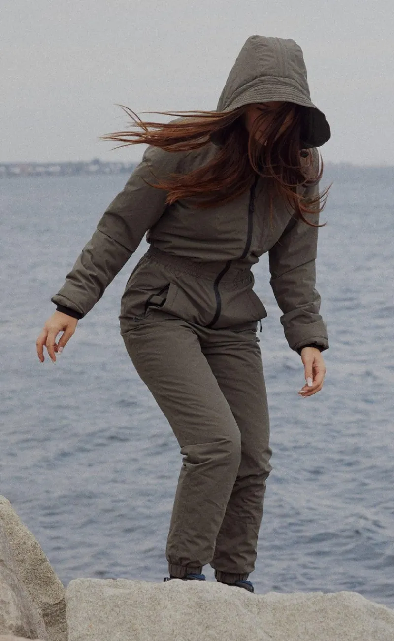 Flyverdragten har en varm fleeceforing og tapede syninger (som holder vand ude). Den er vindtæt, åndbar og har et vandsøjletryk på hele 5.000 mm. Dragten åbnes- og lukkes med lynlås, har hætte og lange ærmer med vindstop. Den har elastik i taljen og brystlommer- samt sidelommer med lynlås.