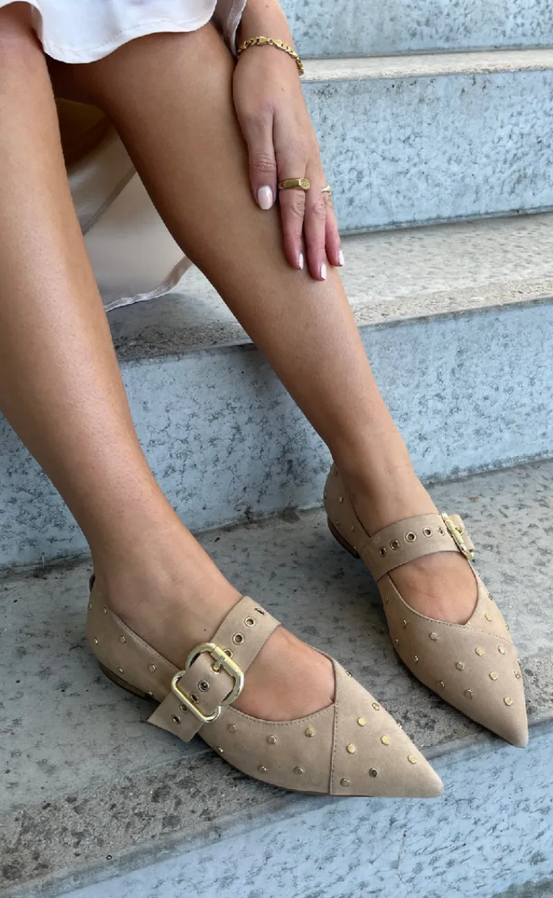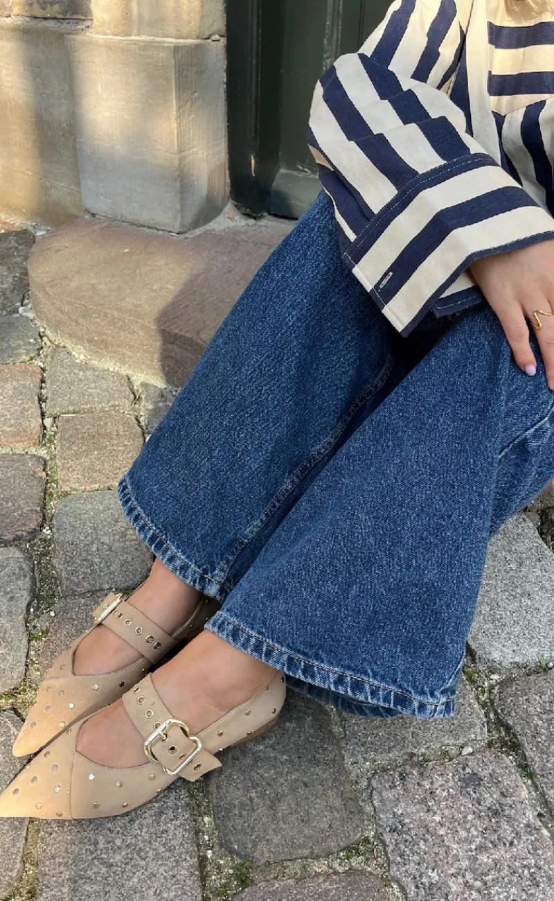 Flotte ballerinaer fra Coepnhagen Shoes i beige, med mange fine detaljer.