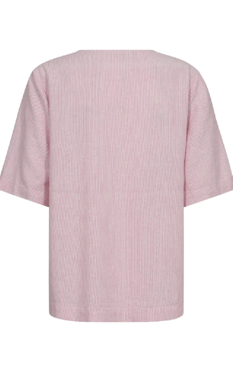 Lækker bluse Fra Freequent i et hvid og lyserødt stribet print.