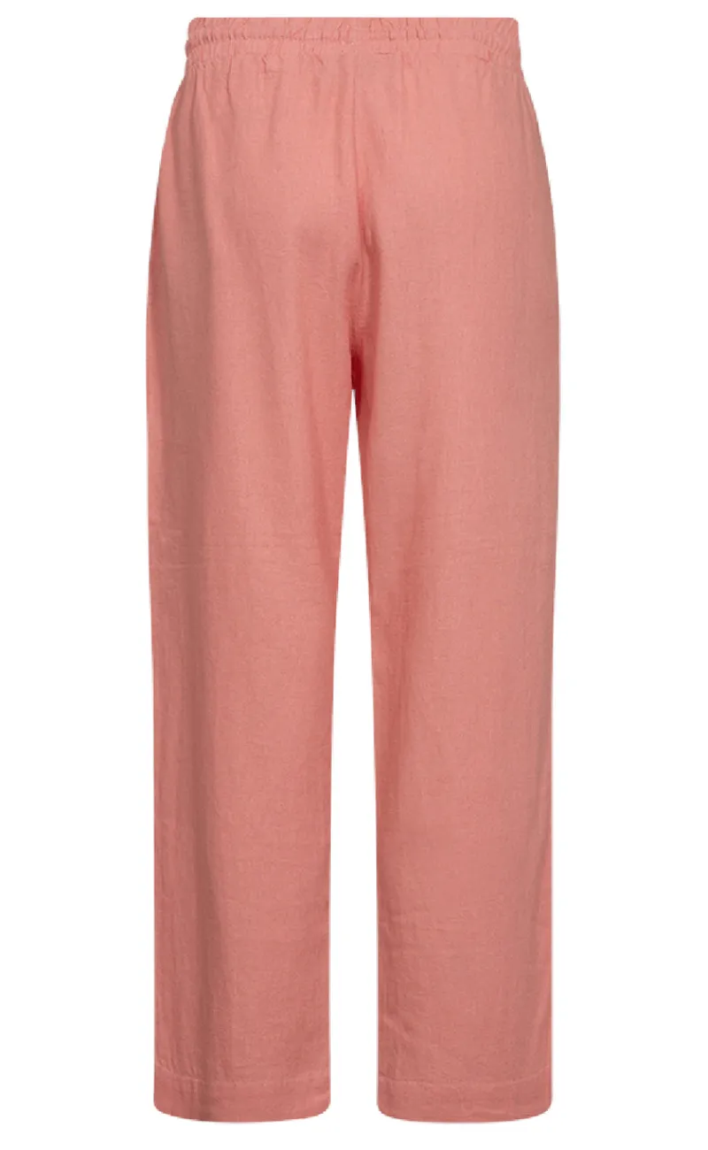 Lækre hørbukser fra Freequent i en flot coral farve.