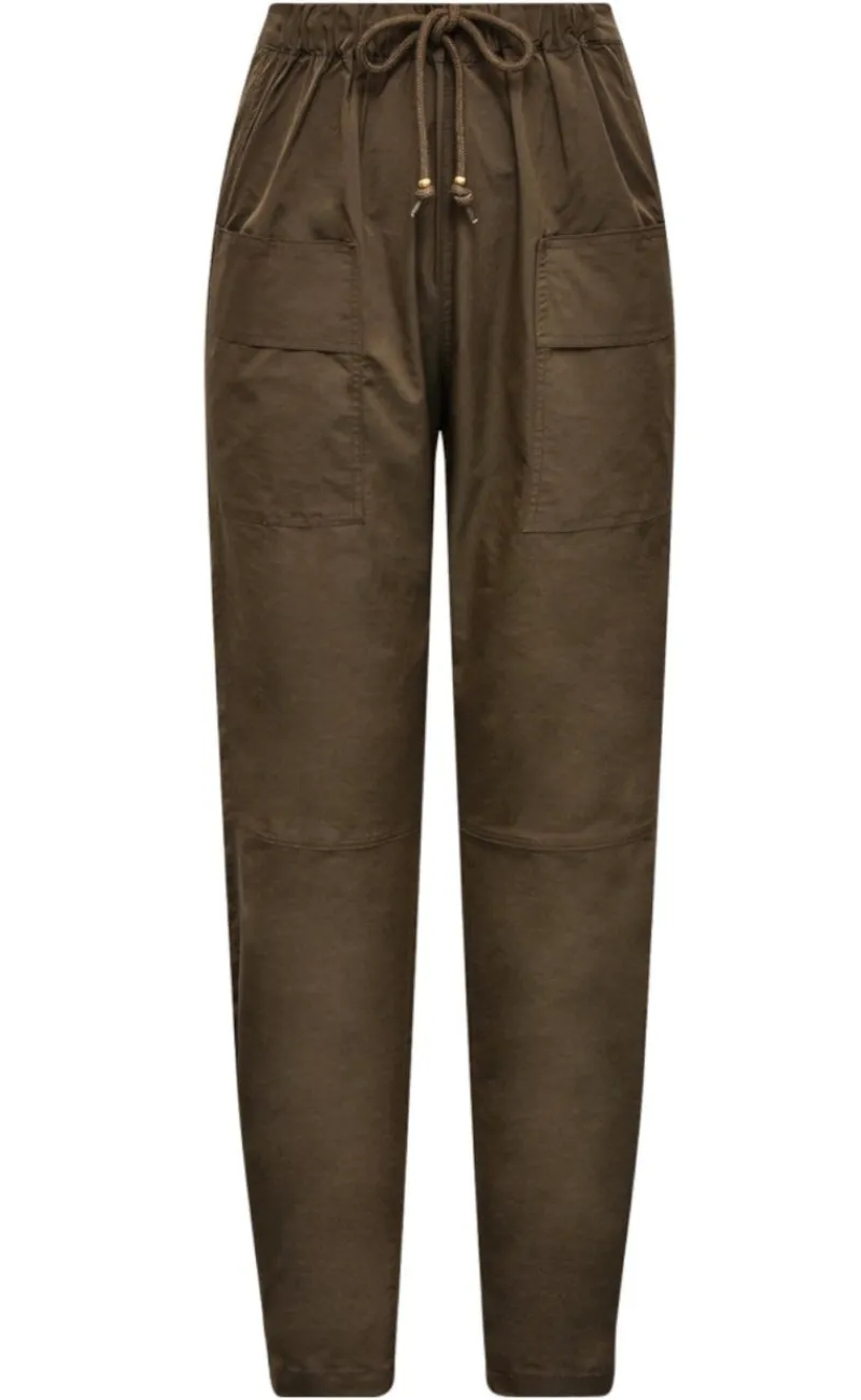 Bukserne har en løs pasform med elastik og bindebånd i taljen. Bukserne er fremstillet i en lækker blød kvalitet og har lommer foran.