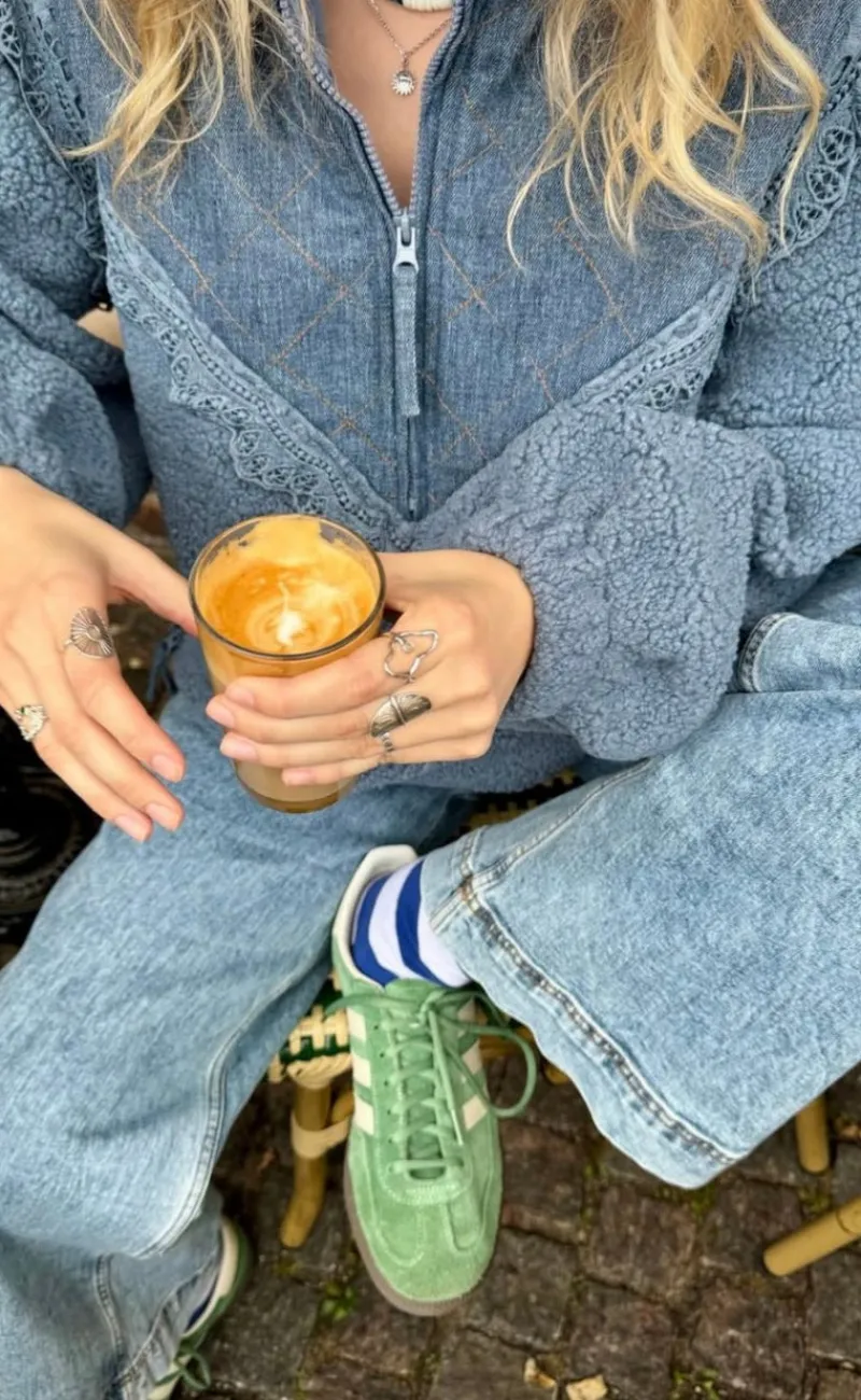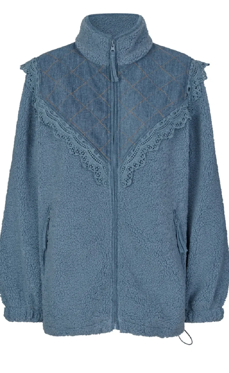 Lækker fleece jakke i en støvet blå jakke.