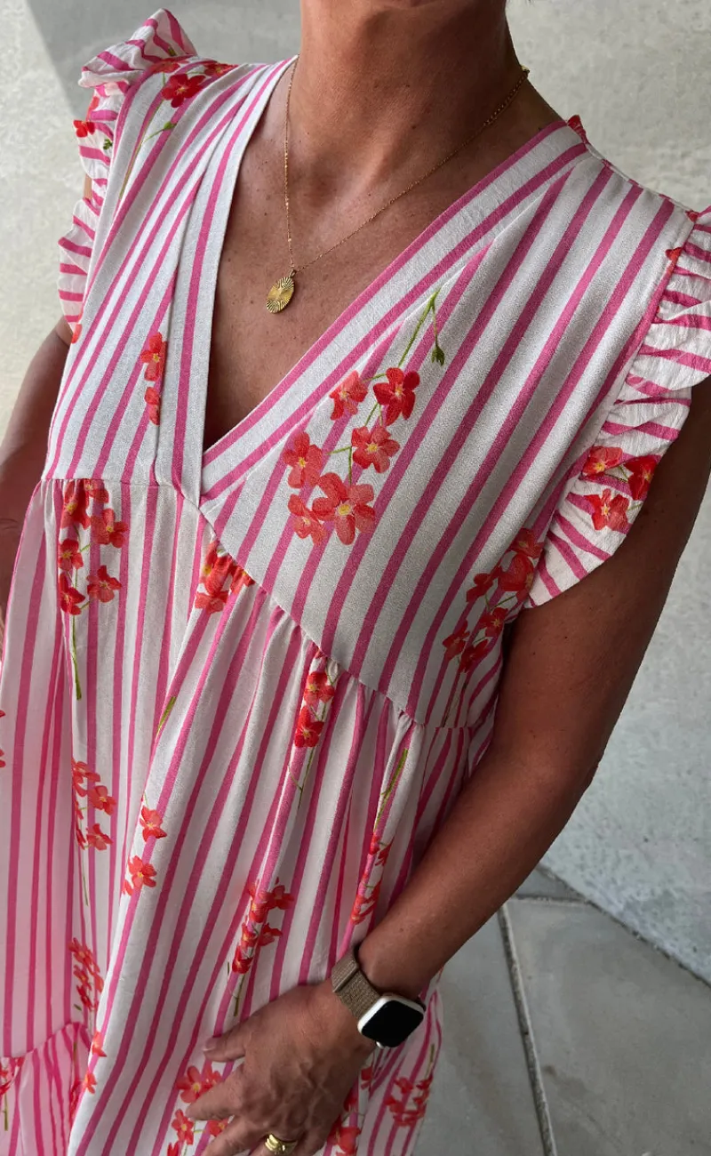 Smuk og feminin kjole fra Marta Du Chateau i et lyserødt print.