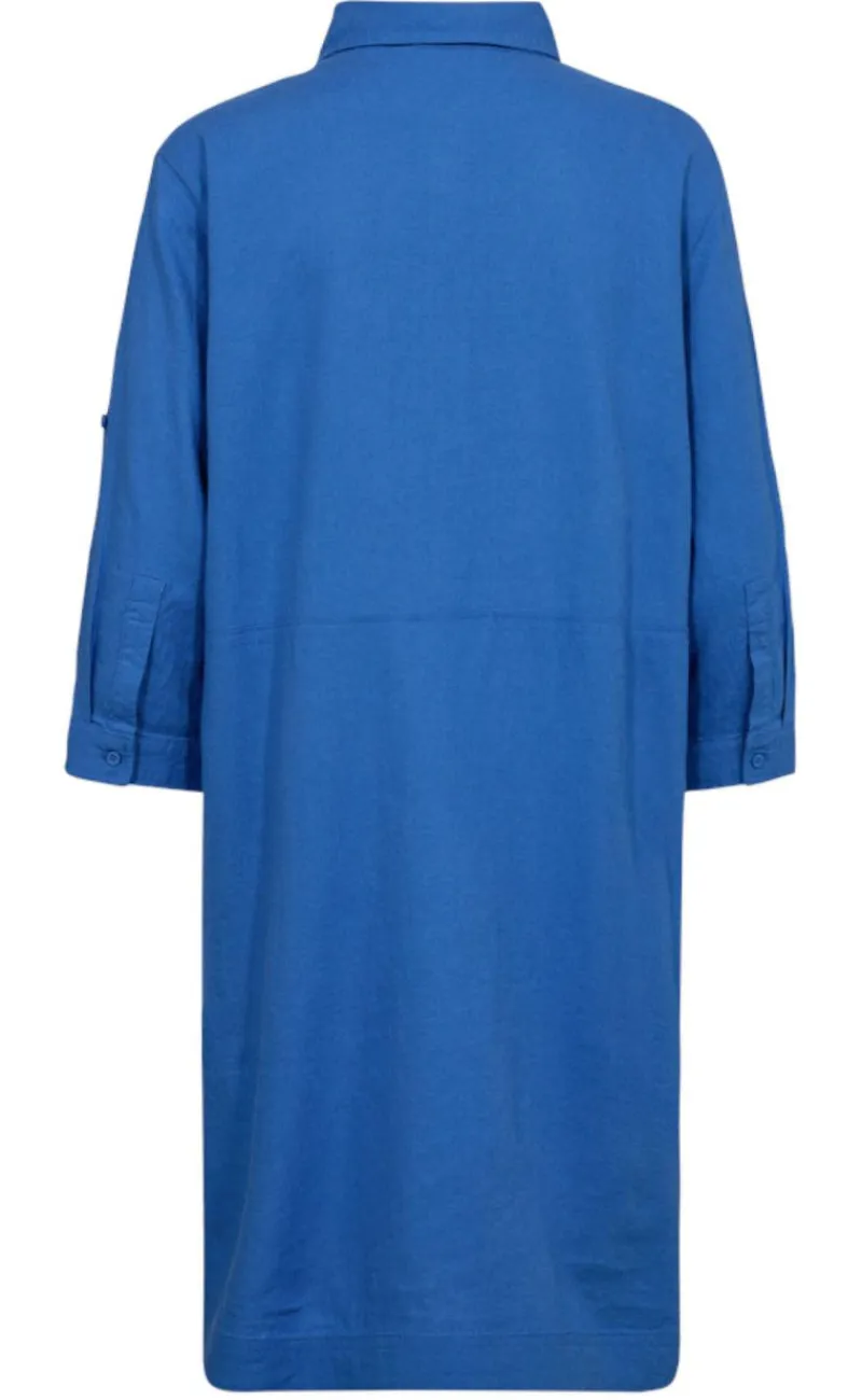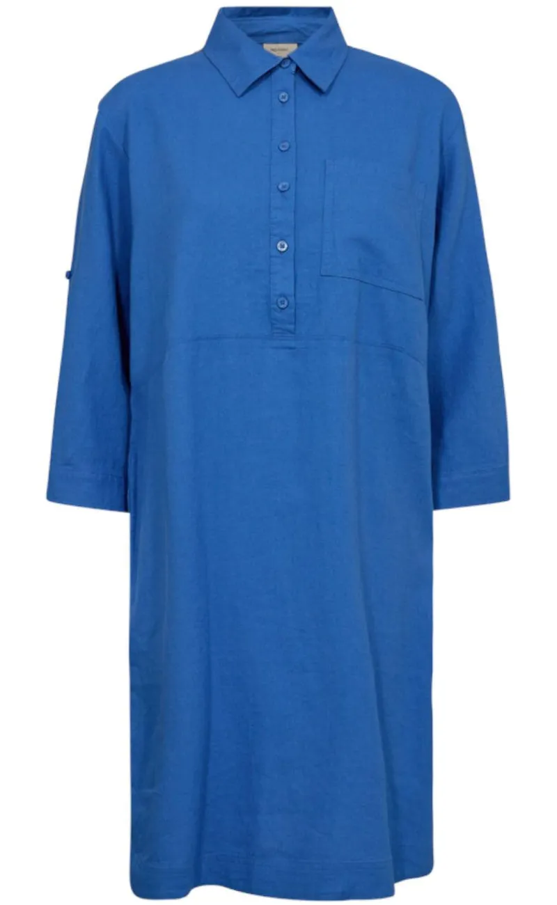 Den sødeste hør kjole fra Freequent i en blå farve.