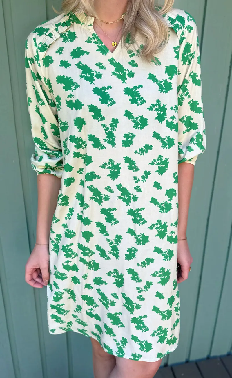 Flot kjole fra Say INA Copenhagen med de fineste blomster i grøn.