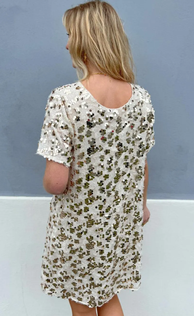 Smuk kjole fra INA Copenhagen i champagne-farvet med palietter.