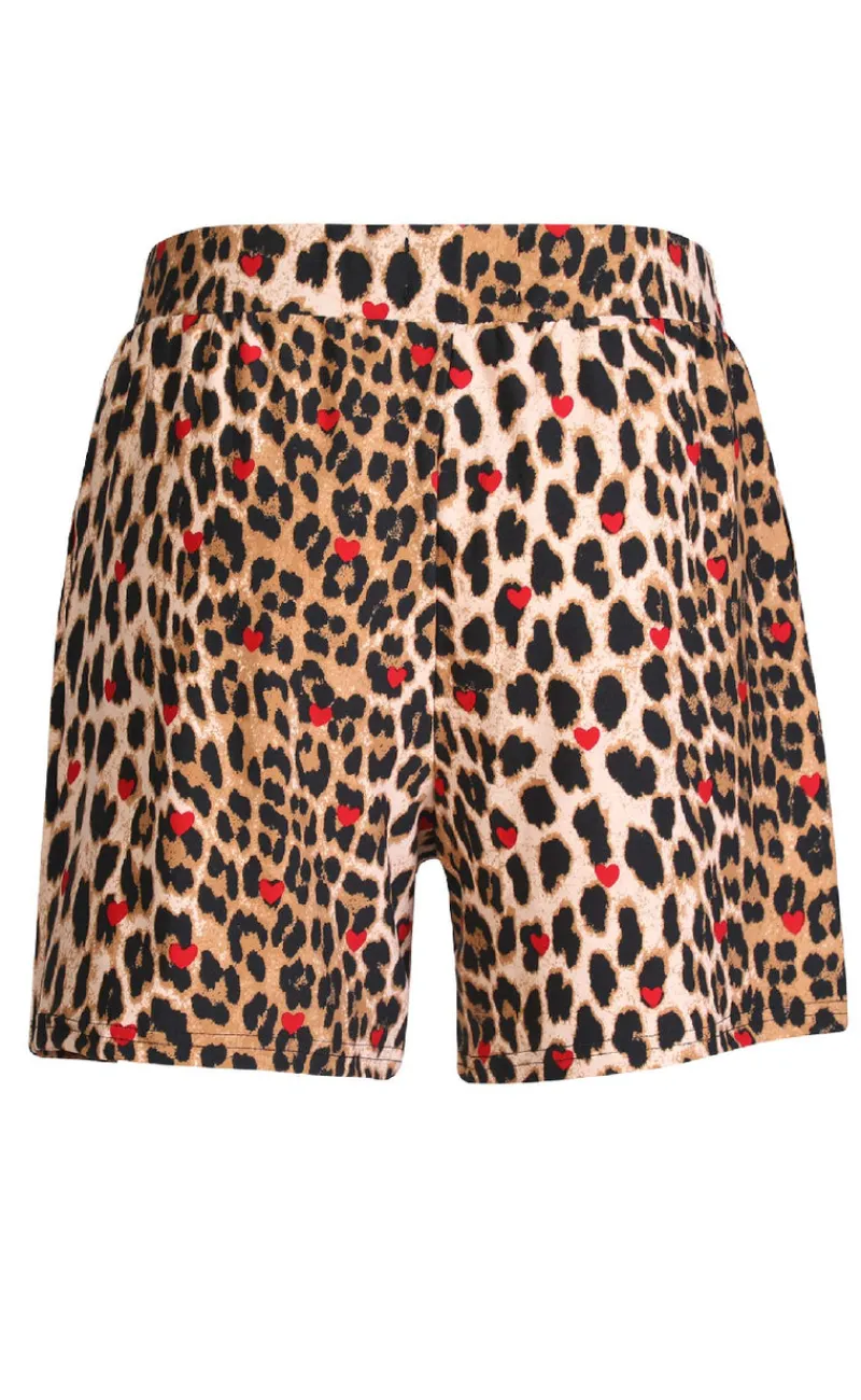 Afslappede shorts fra Liberte i et leoprint med røde hjerter.