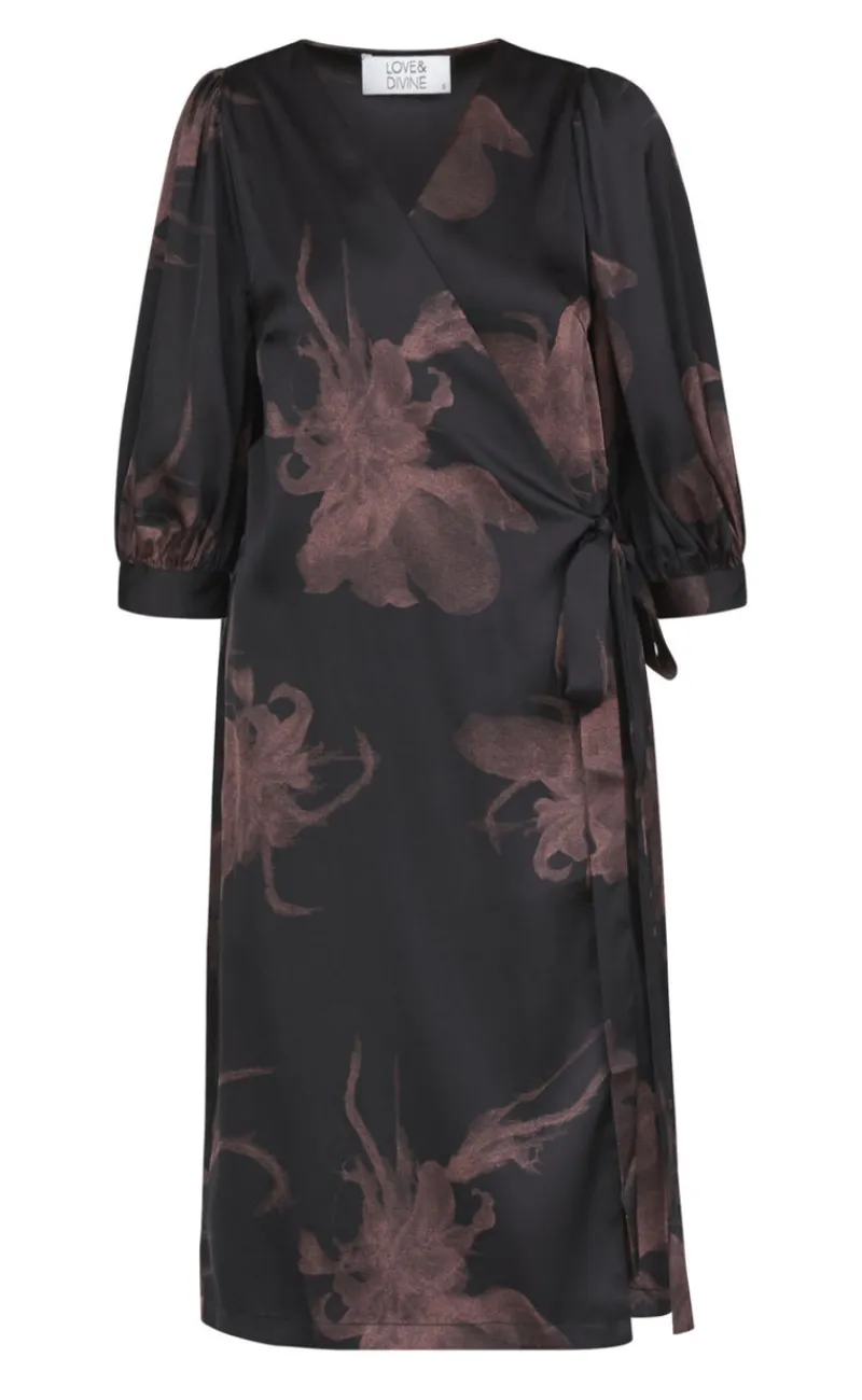 Elegant kjole fra Love & Divine i et sort/bordeaux print.
