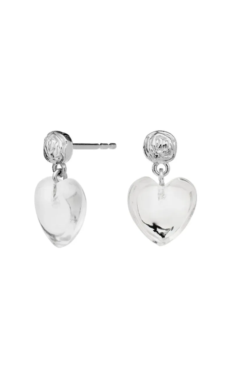 Søde små øreringe i sølv, med en krystal formet som i hjerte.