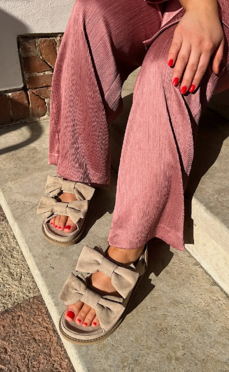 Flotte slip on sandaler fra Copenhagen Shoes i beige med sløjfer.