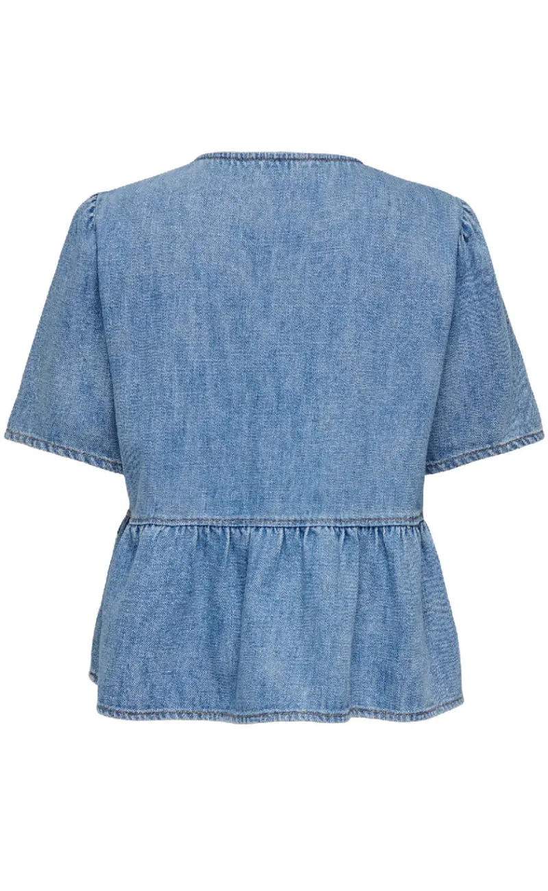 Sød skjortebluse fra ONLY i lyseblå denim.