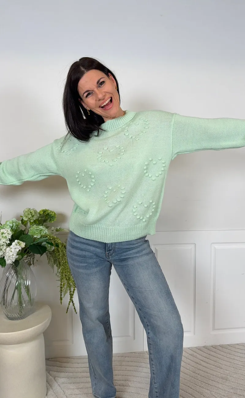 Fin striktrøje fra Marta Du Chateau i en smuk grøn farve med hjerte detaljer.