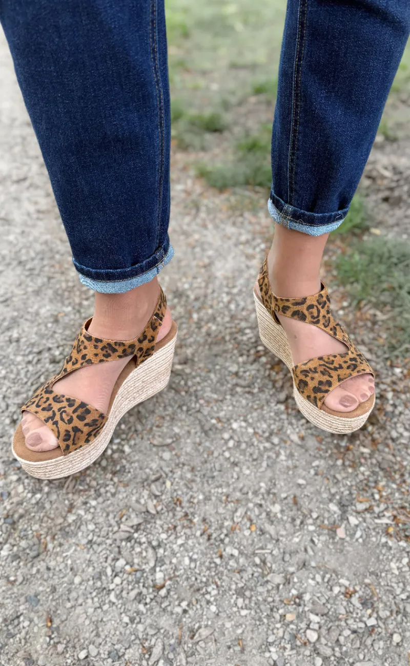Skønne sandaler med kilehæl fra Tim & Simonsen i brun med leopardprint. Sandalerne er lavet i ekstra bløde materialer, så de føles helt fantastiske at have på.