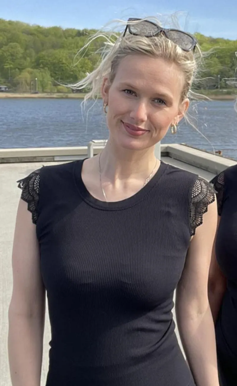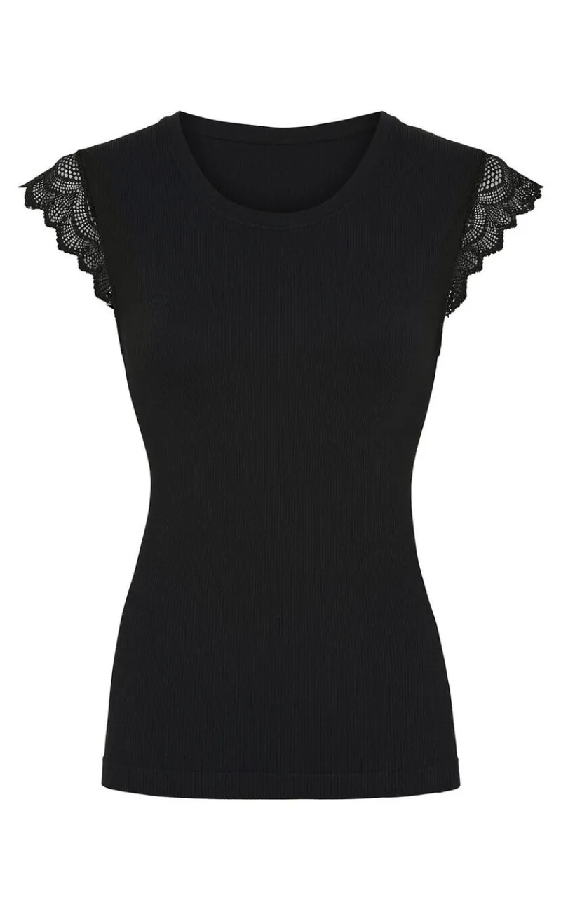 Ribbet top fra Tim & Simonsen i sort, med blondeærmer.
