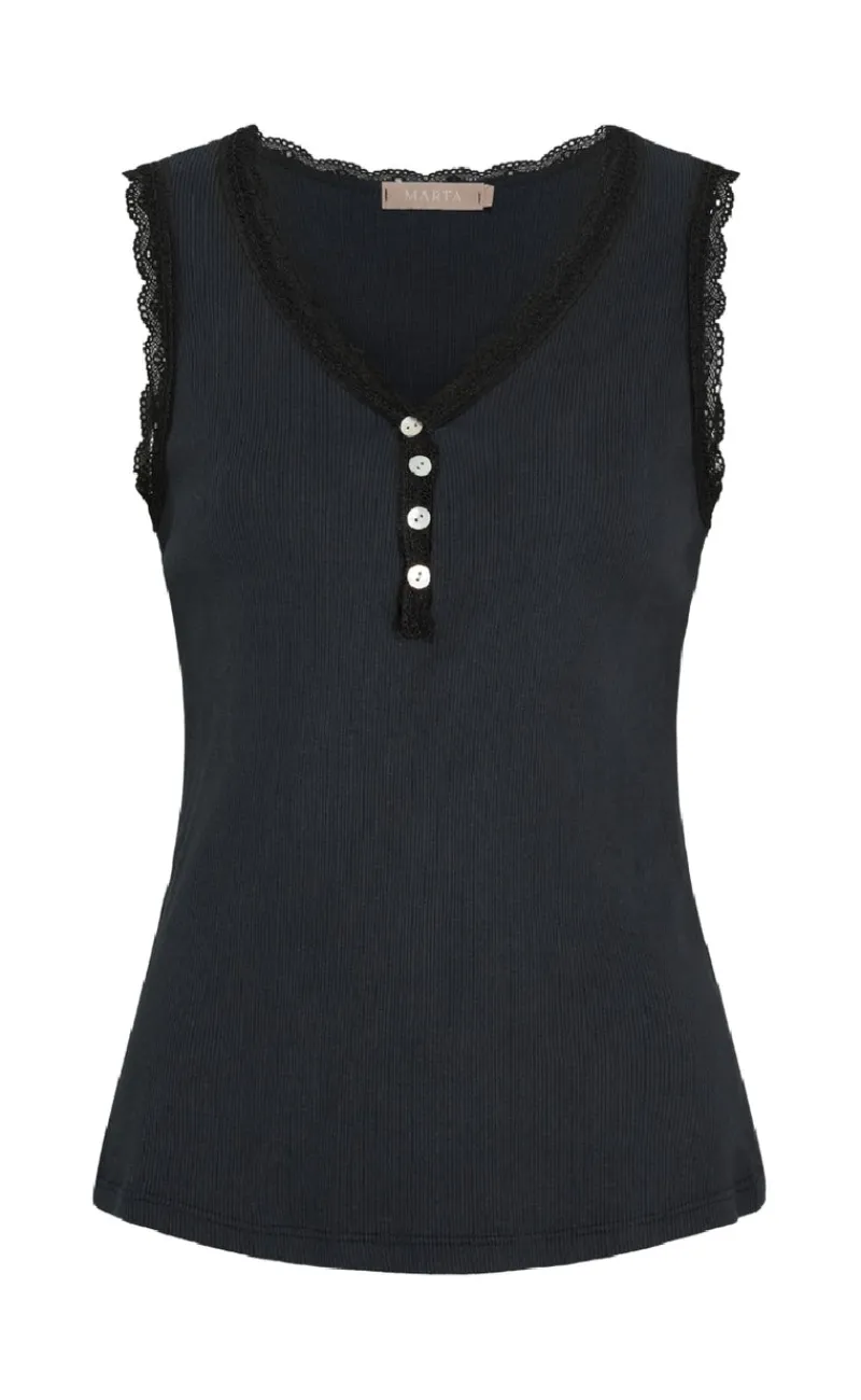 Fin top fra Marta Du Chateau i sort, med søde detaljer. Den kommer i en ribbet kvalitet.