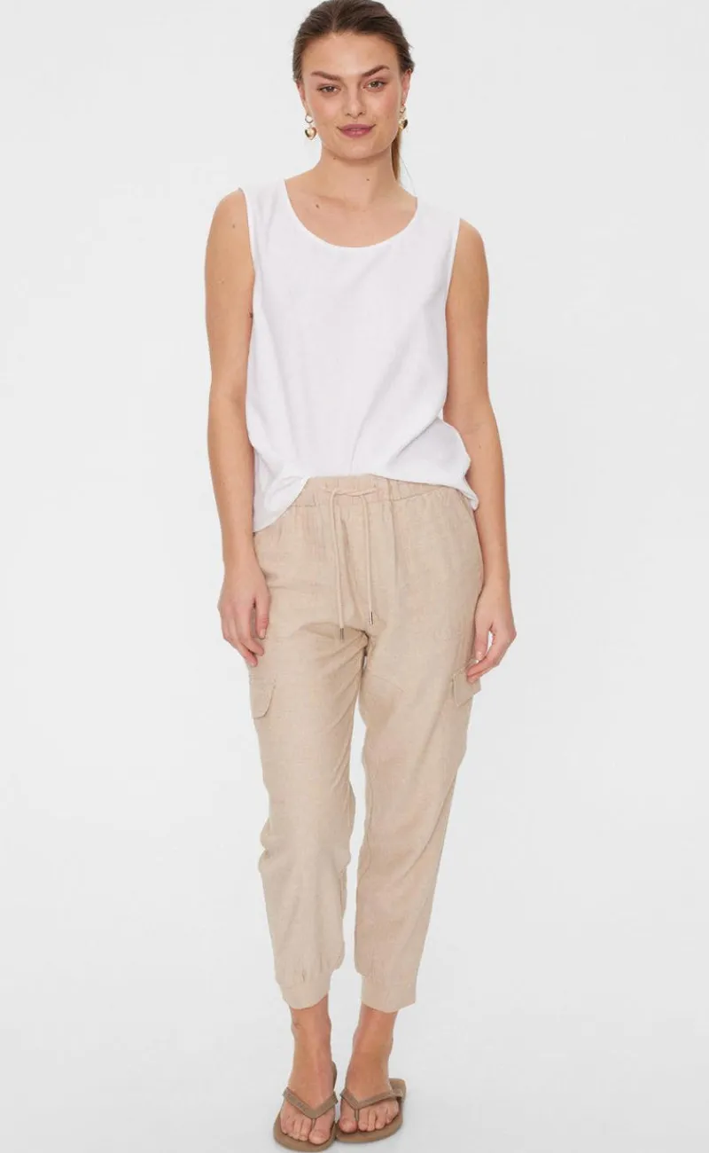 Toppen er ærmeløs og har en rund halsudskæring. Desuden har toppen knapper på ryggen.