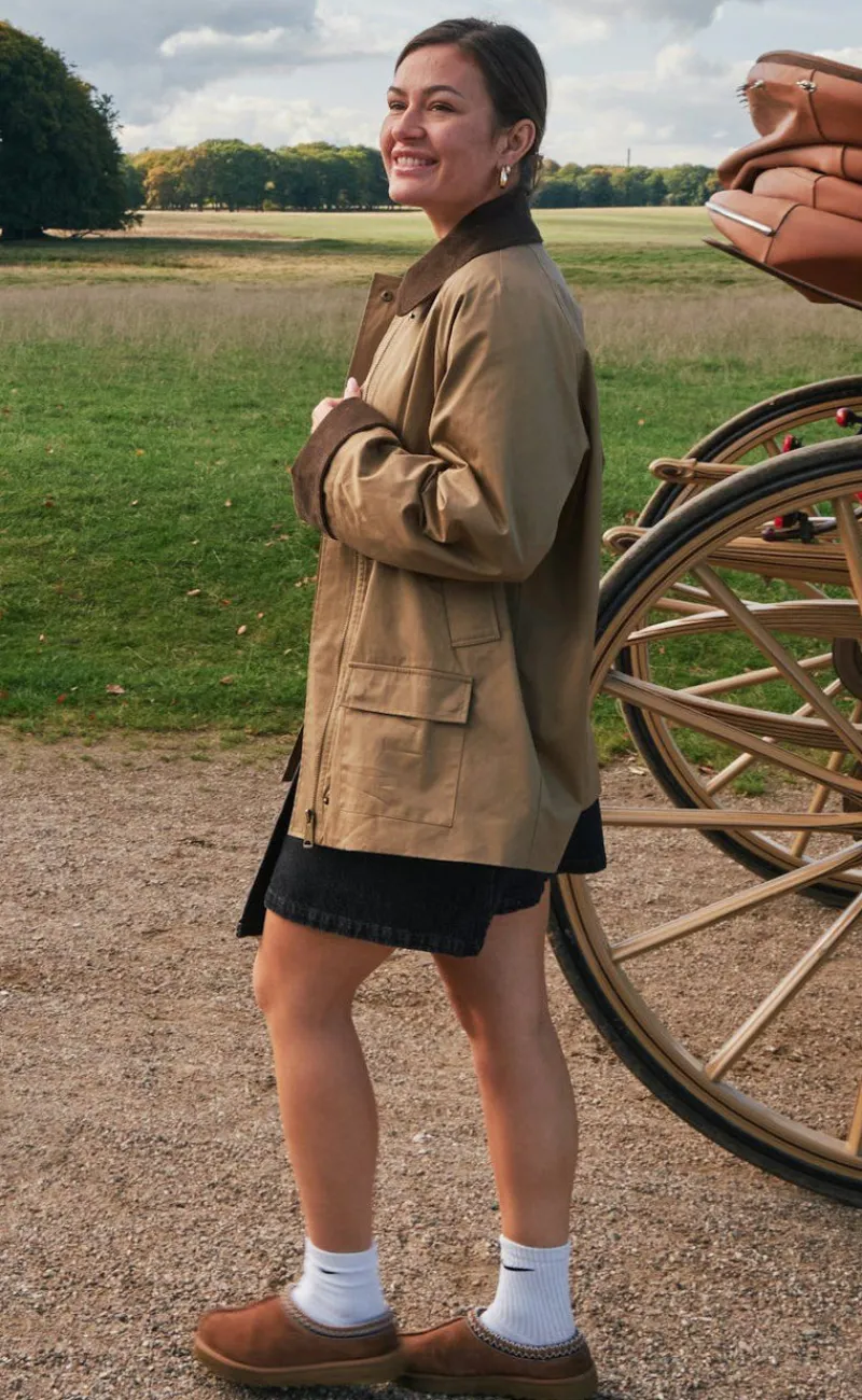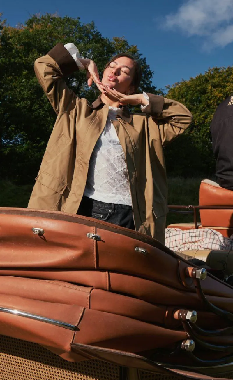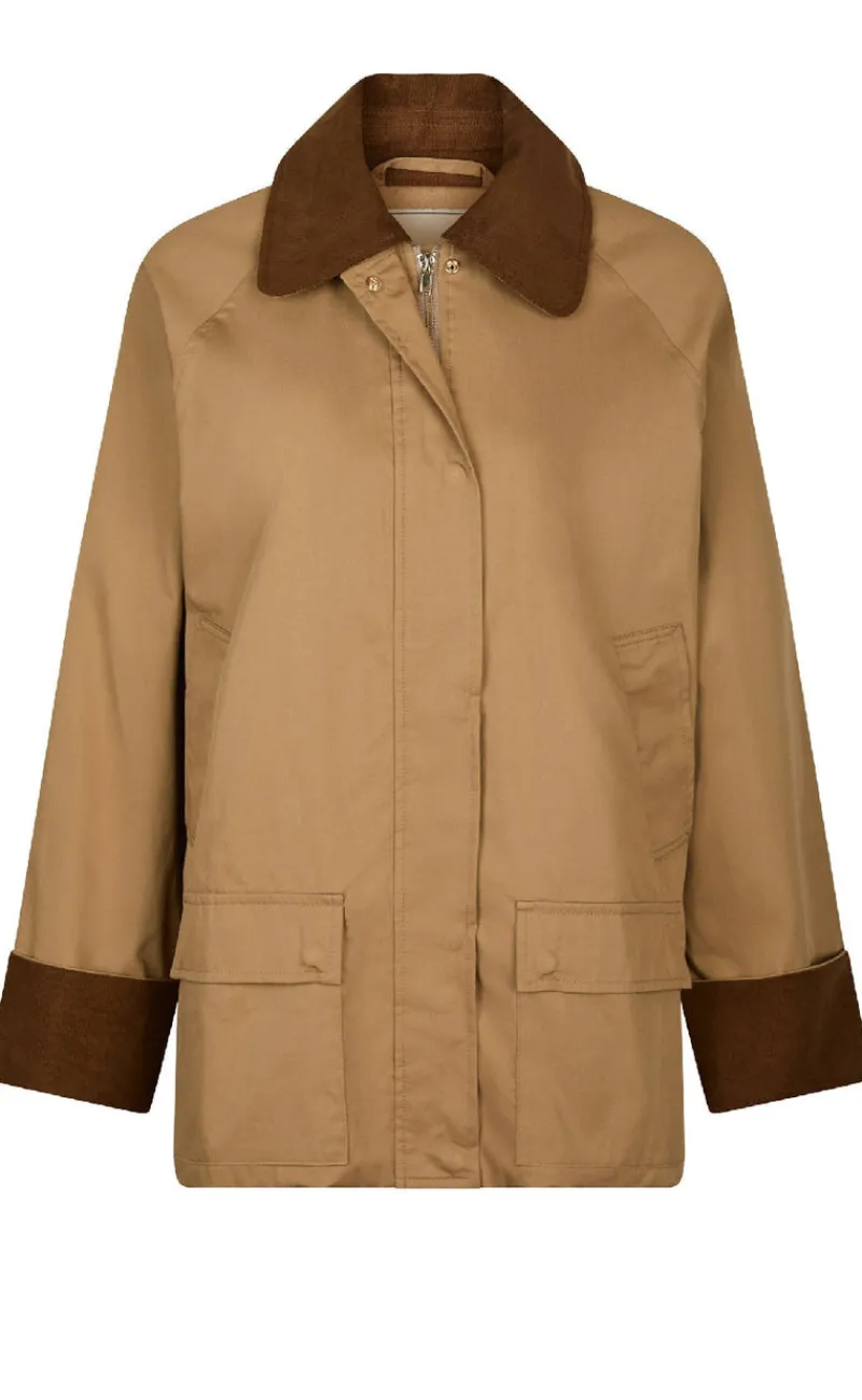 Jakken har en oversize pasform, skjult lynlås fortil samt har den lommer.