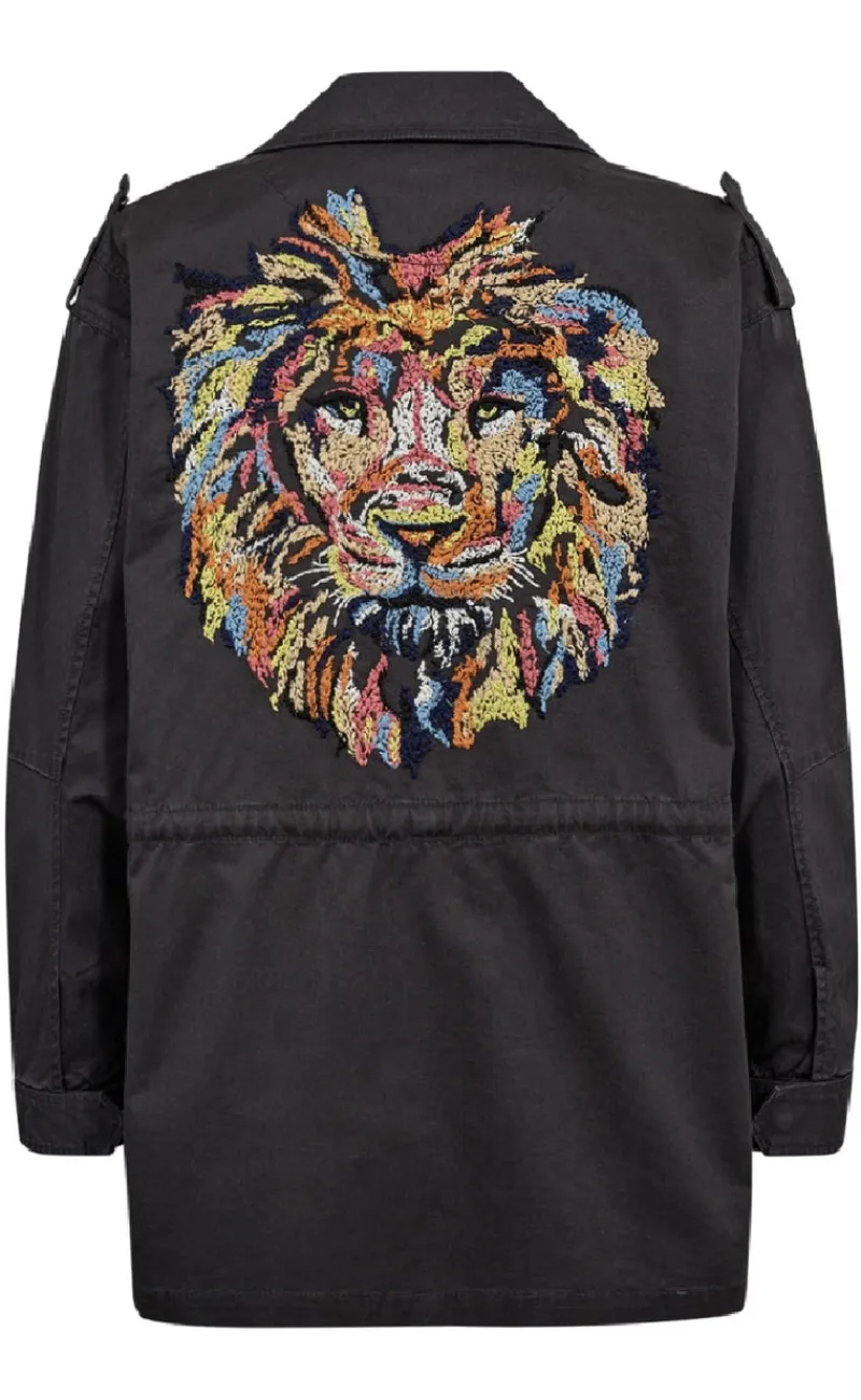Flot og cool jakke fra Gossia i mørkeblå, med et tiger motiv bagpå.