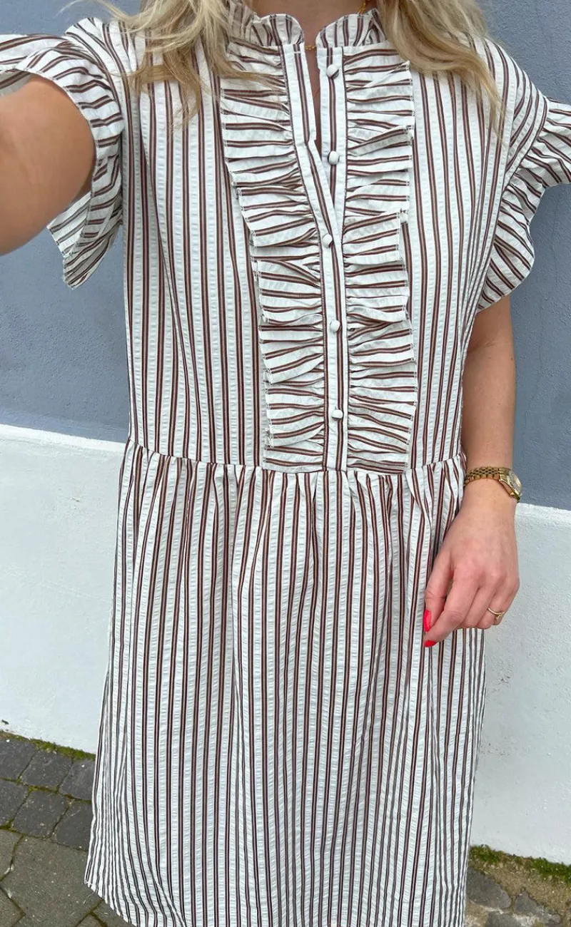 Smuk kjole fra INA Copenhagen i hvide og brune striber.