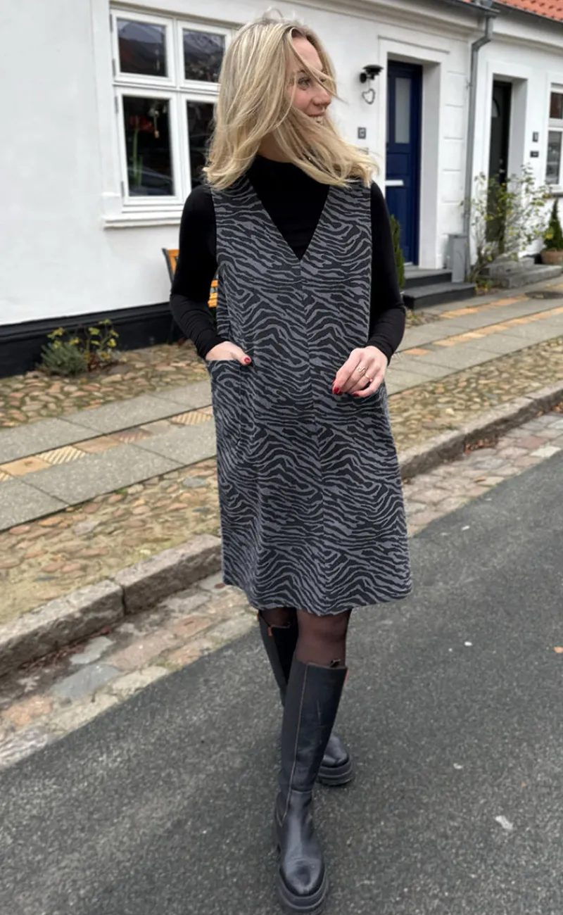 Smart spencer-kjole fra INA Copenhagen i denim zebra materiale.