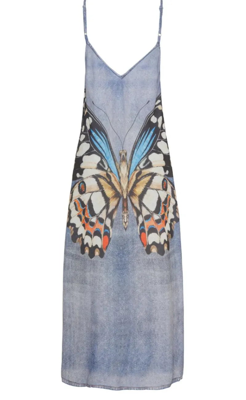 Flot kjole fra Marta Du Chateau i blå med en sommerfugl.