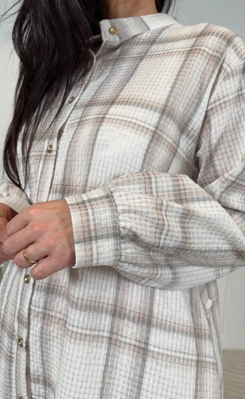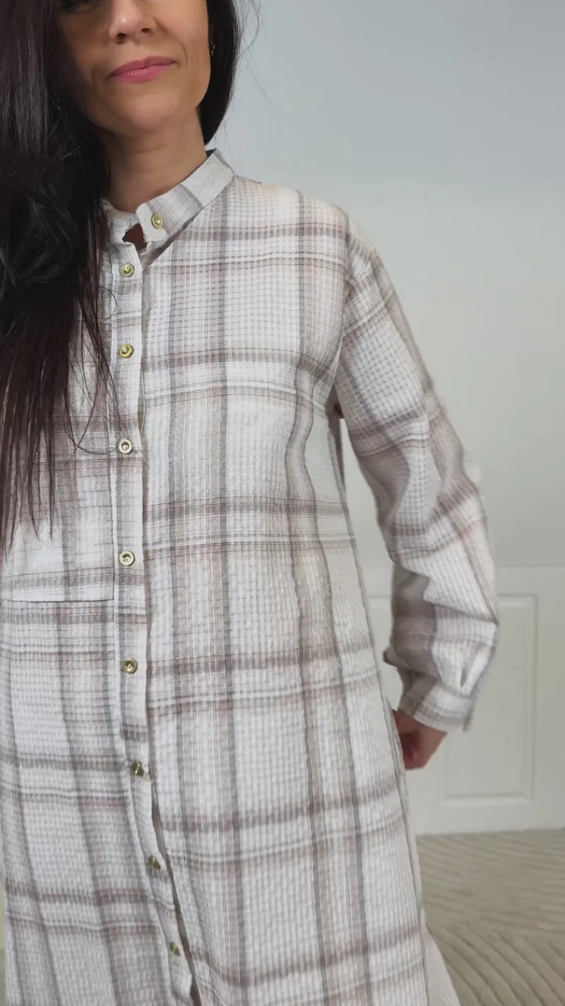 Skjorte kjole fra Marta Du Chateau i et beige stribet print.