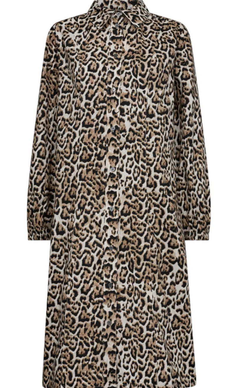 Kjolens længde går til lige over knæet, den har lange ærmer samt en knaplukning.