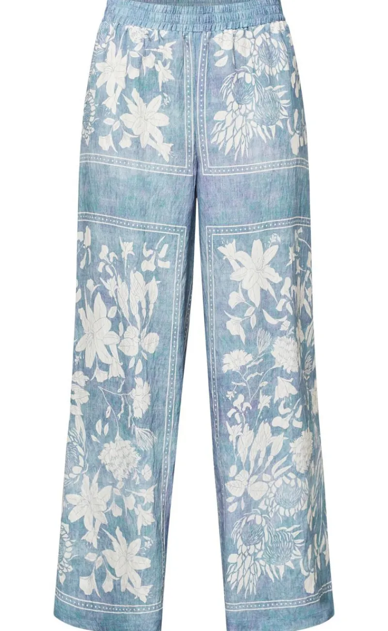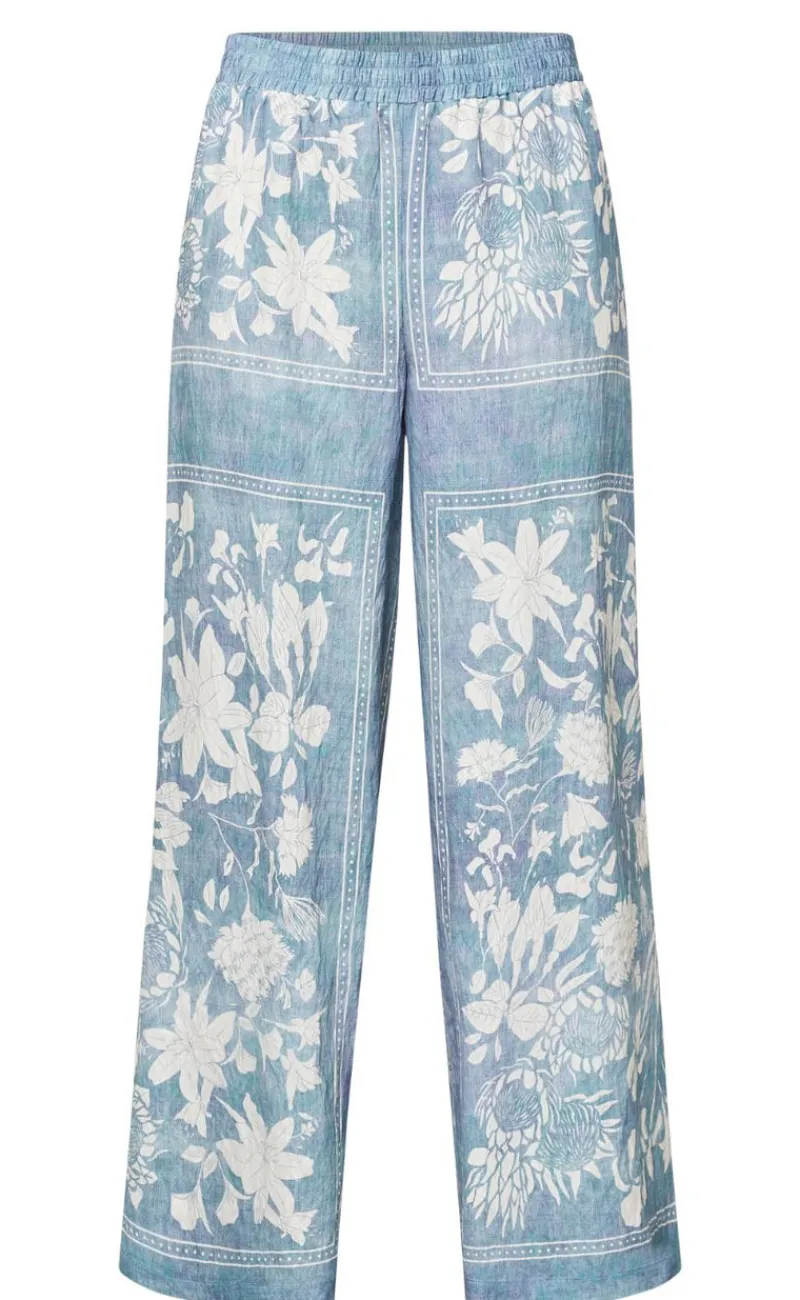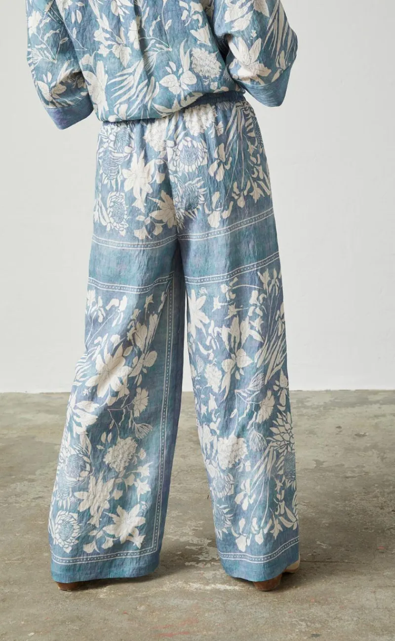 Disse bukser er i et blomstret print og har vide ben.