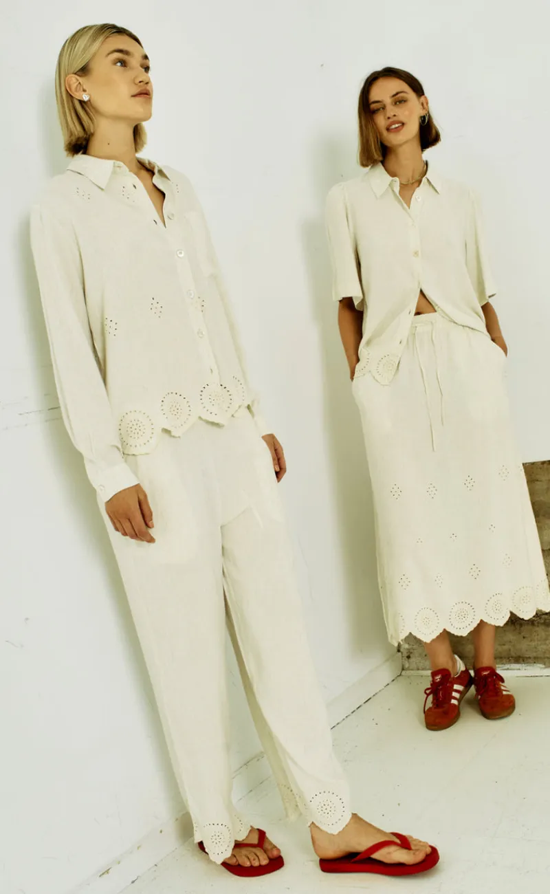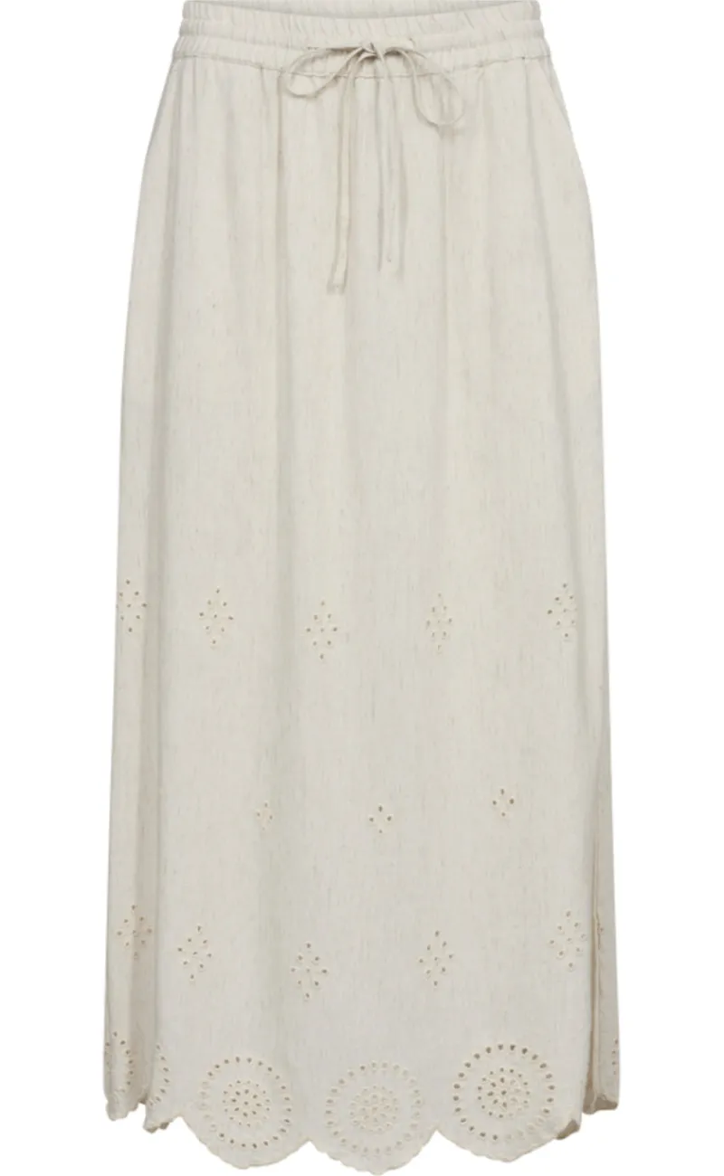 Nederdelen har elastik i taljen og blonde detalje i bunden.