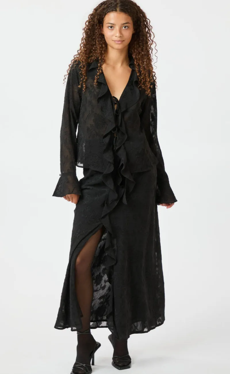 Festlig bluse fra Neo Noir i et sort print.