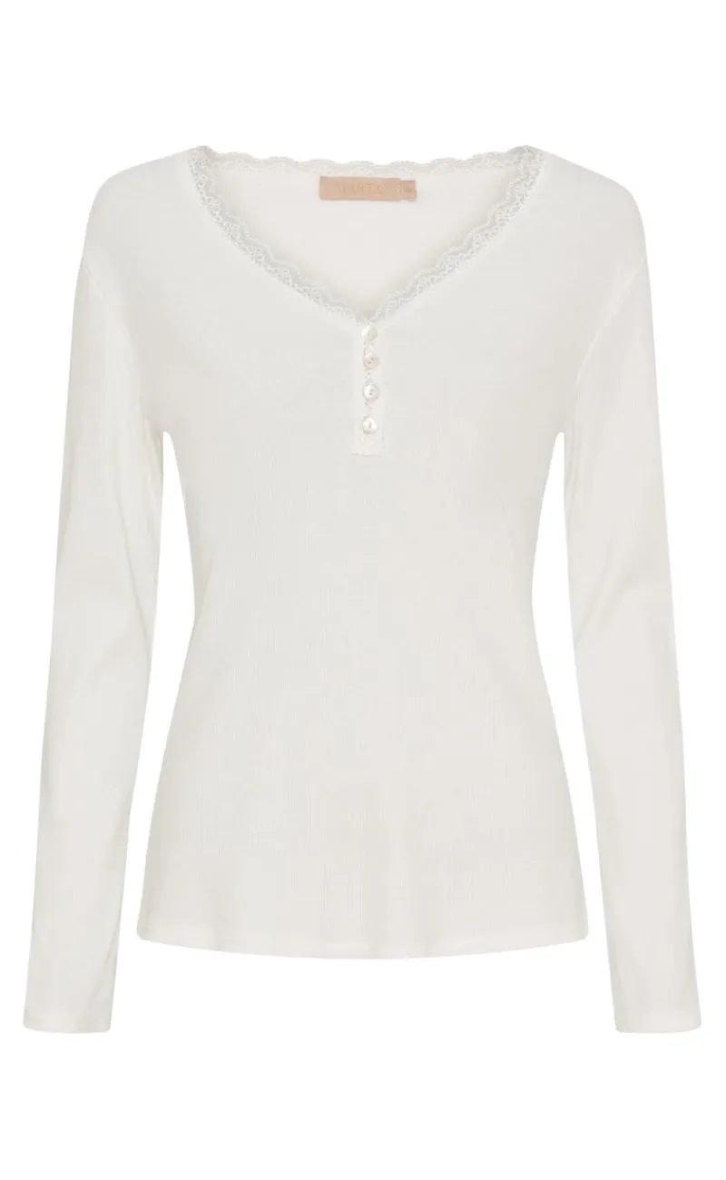 Fin og simpel bluse i hvid, med en v-udskæring.