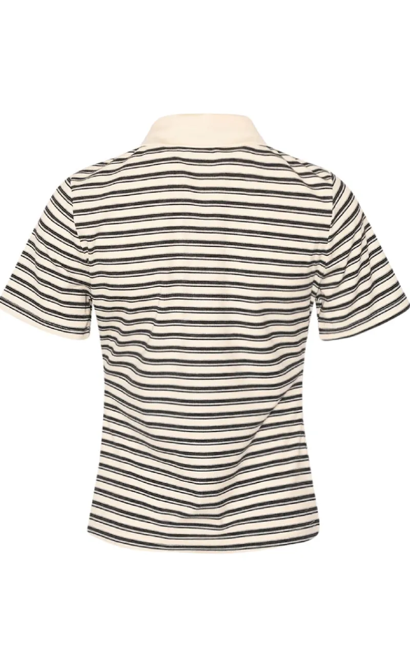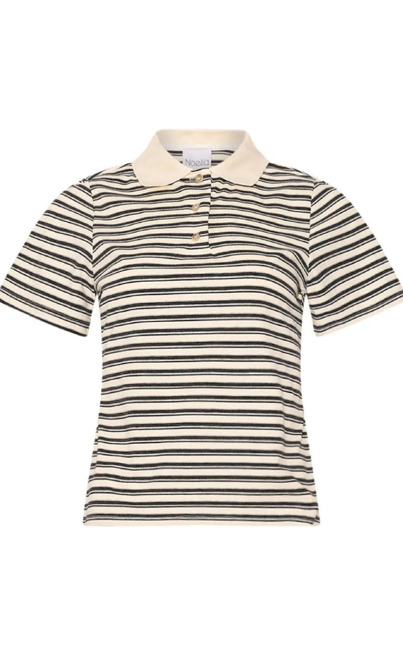 Kortærmet polo bluse fra Noella i et stribet print.
