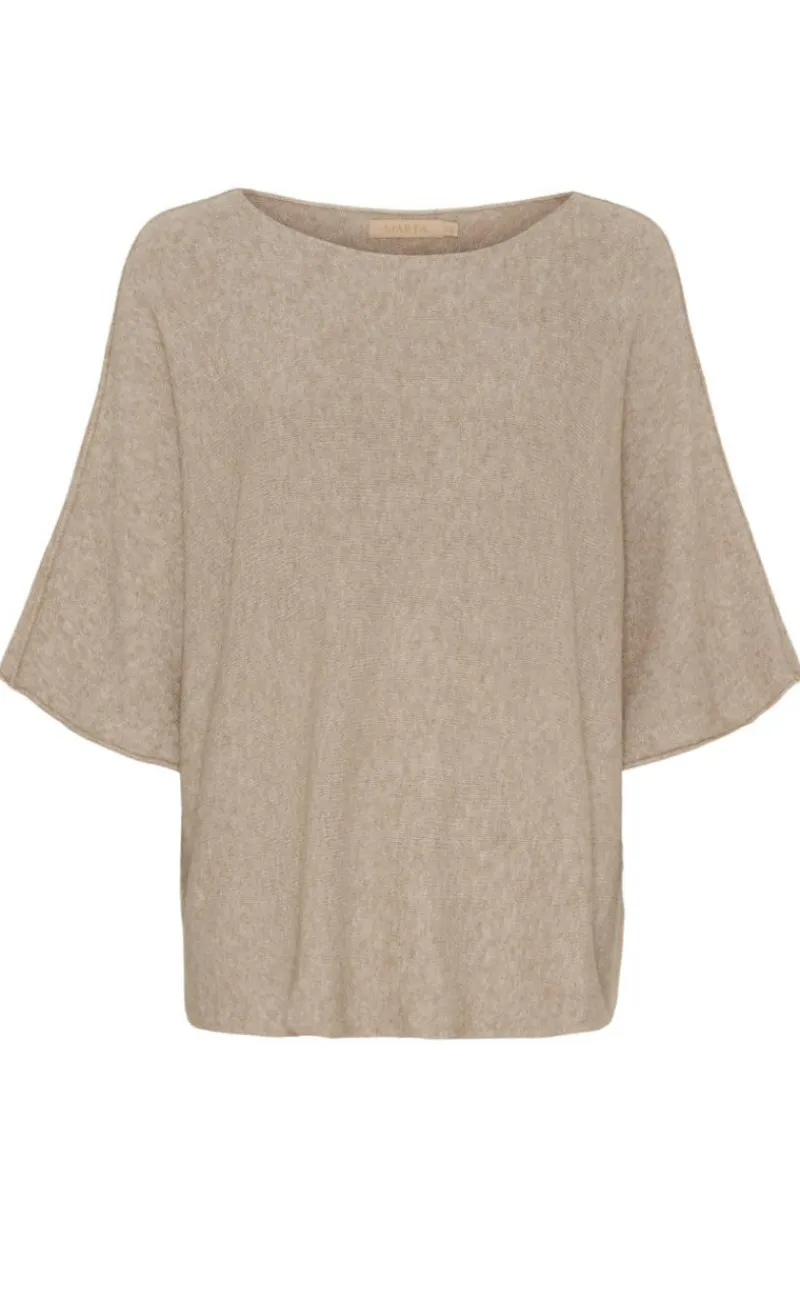 Blusen har brede ærmer, en rund hals samt en løs pasform.
