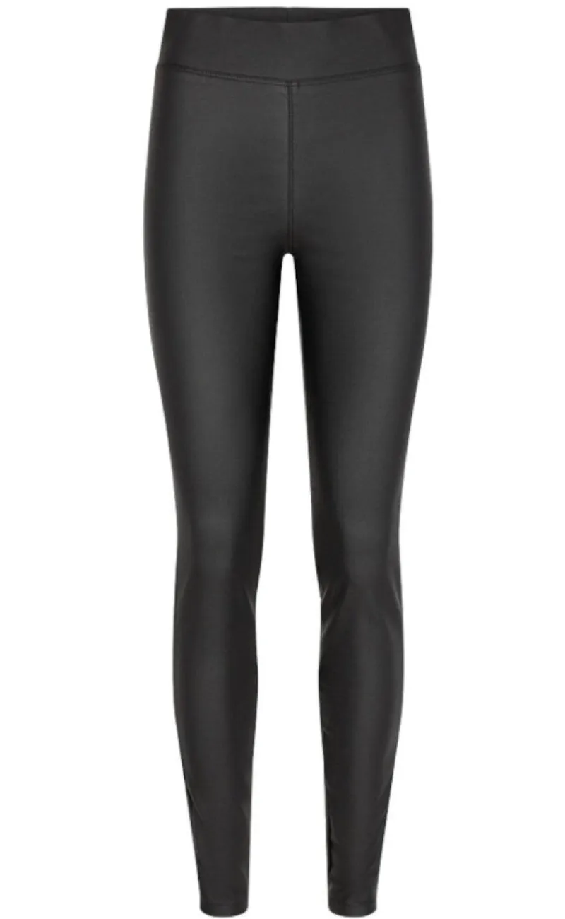 Lækre og strækbare bukser fra Freequent i sort med læder-look.