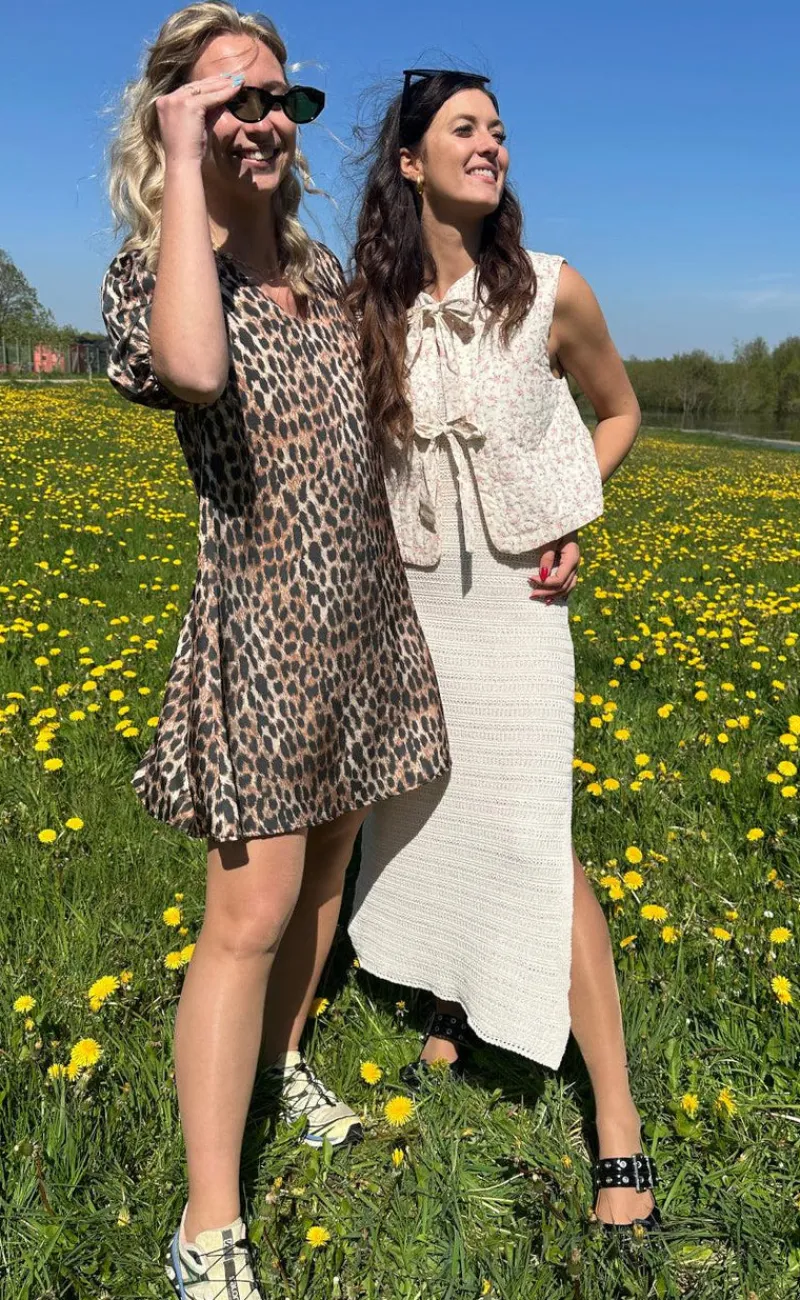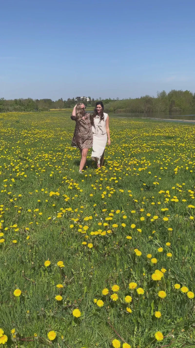 Kjolen har en løs pasform, pufærmer samt en v-hals.