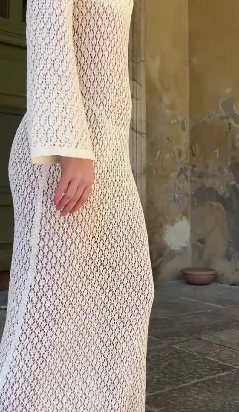 Kjolen har en maxi længde og er fremstillet i en let transparent kvalitet.