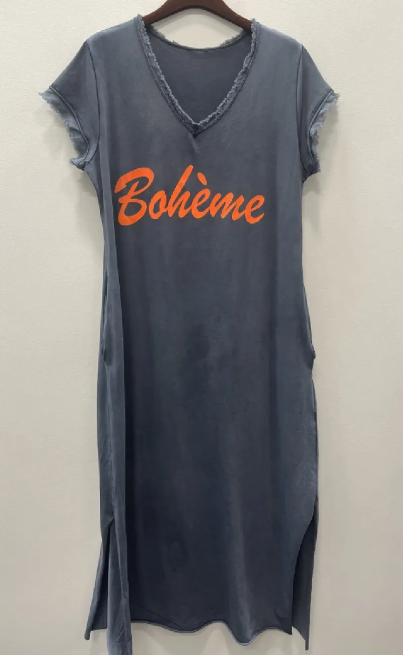 Afslappet kjole fra Marta Du Chateau med skrift fortil.
