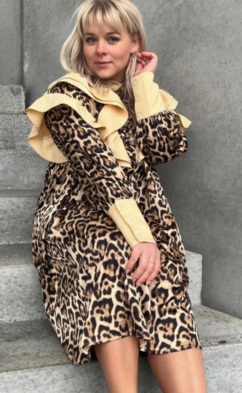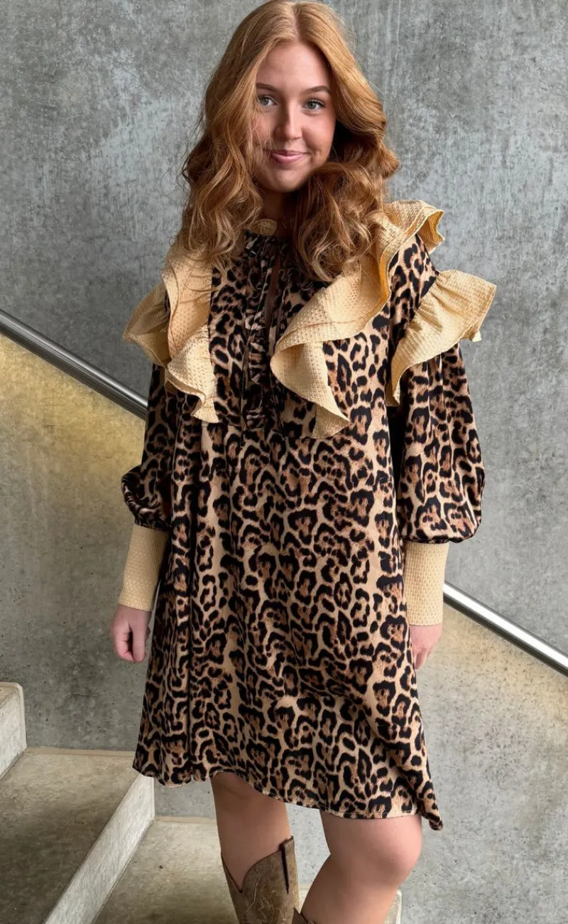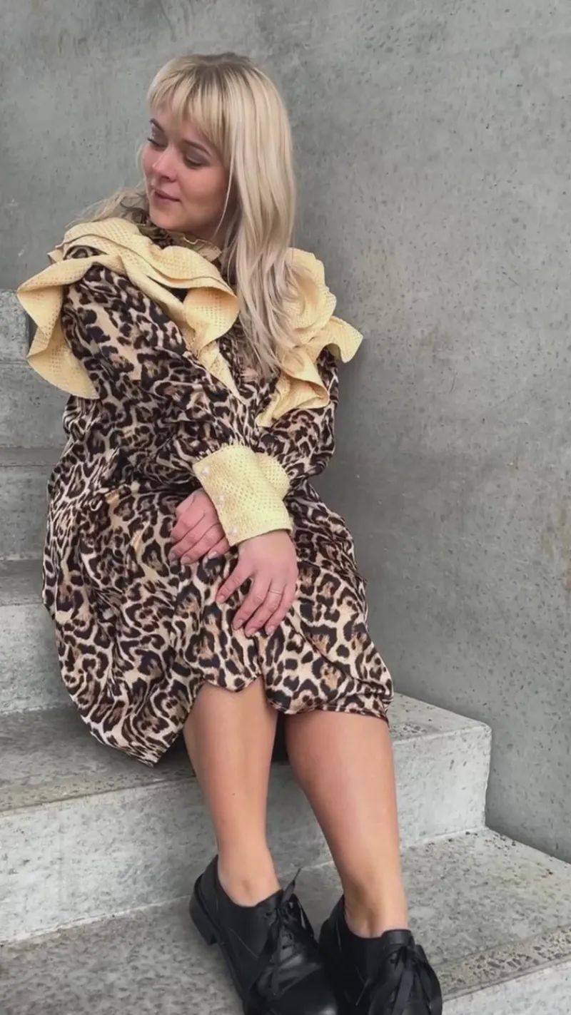 Pæn kjole i et leopard print.