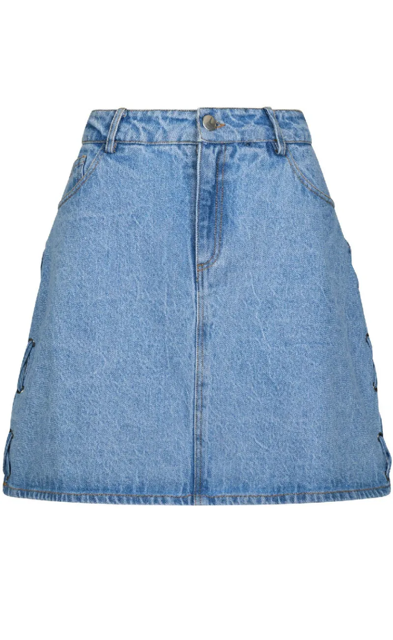 Mini denim nederdel fra Neo Noir i lyseblå.
